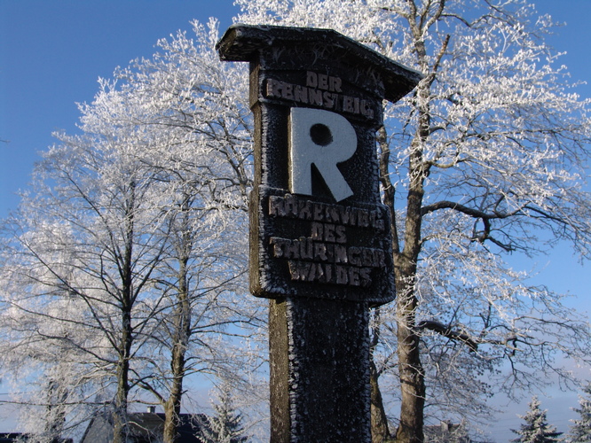 Das weiße R, auch "Mareile" nach der Wirtstochter des Waldhauses Weidmannsheil in der Gemarkung Ludwigsstadt benannt, ist das bekannte Markenzeichen des legendären Höhenwanderweges, der nachweislich im Jahre 1330 das erste Mal in einer Urkunde erwähnt wurde.