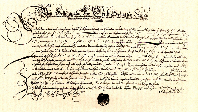 Instruktion von Herzog Ernst vom 24. August 1654 zur Bereitung des Rennsteiges bis nach Böhmen hin (Repro: archiv-rüger)