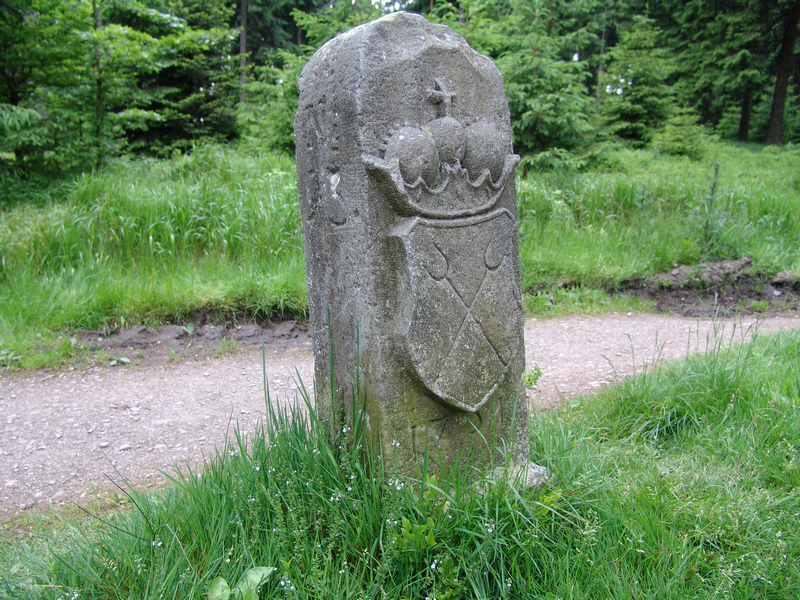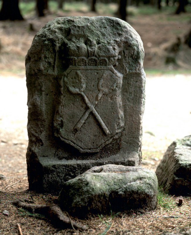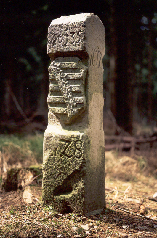 Dreiherrensteine stehen am gemeinsamen Schnittpunkt dreier Herrschaftsbereiche. Hier der ehemalige Dreiherrenstein "Am Saarzipfel" bei Siegmundsburg von 1733. Er trennte einst