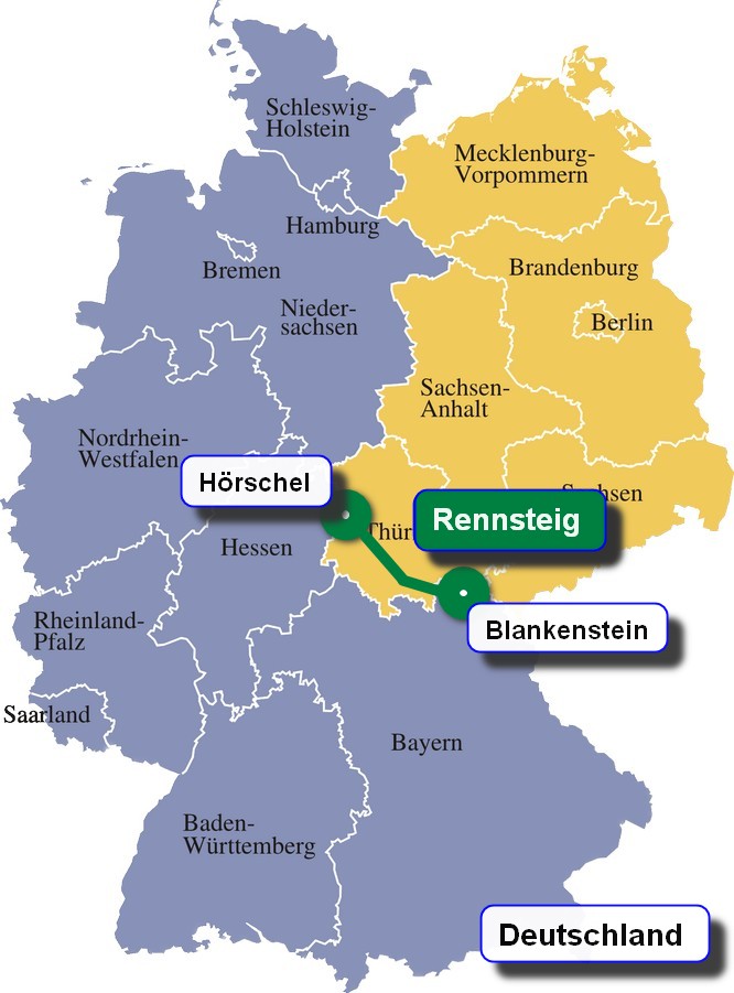 Ortschaften, durch die der Rennsteig verläuft: